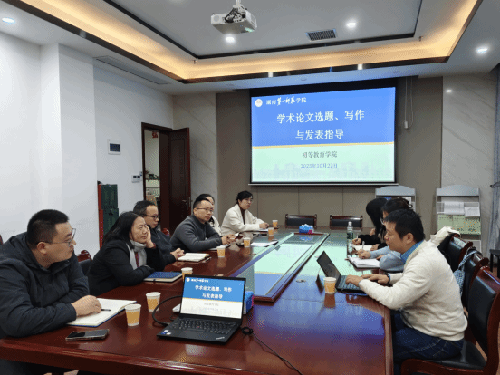 谢泉峰博士就论文写作和科研课题申报问题与老师们进行了详细而深入的沟通。论文写作方面,谢博士结合自身论文写作的经历,与老师们做了全面而深入地分享,并就论文选题、方法应用、投稿等问题进行了详细探讨。科研课题申报方面,谢博士结合自身经验就课题的选题、文献综述的撰写、项目框架的设计、方法的应用、研究基础的呈现等问题和老师们进行了深入的交流,起到了良好的沟通效果。