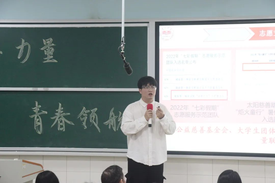 紧接着进行宣讲的是20级学前1班的舒薇同学。她以“翻越浪浪山,奋楫驭舟过万山”为主题,简述了自身的实践经历,教同学们如何关注、参与公司里的各类活动和比赛并如何从比赛中脱颖而出。她通过亲身经历鼓励教育公司学子应奋楫驭舟,不畏前路。