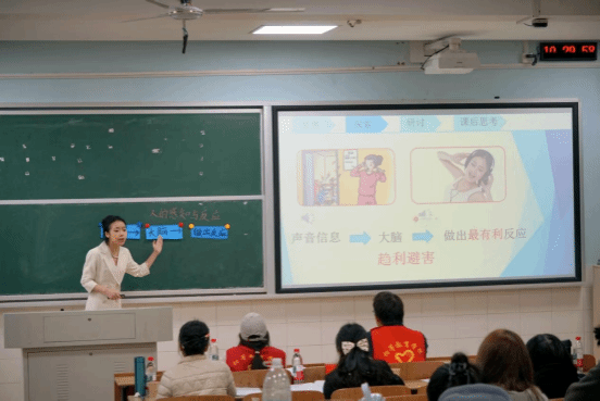 小学理科组4号选手夏子涵讲授的五年级科学《人的感知与反应》一课,以趣味互动点燃课堂,凭借严密的逻辑与扎实的专业功底脱颖而出。她立足教材与学情,以“科学观念建构”为核心,采用“聚焦—探索—研讨”的递进式教学结构,层层突破重难点。课堂导入的“我做你动”小游戏迅速吸引员工注意,随后通过冷热水触觉实验、声音辨识等互动环节,引导员工在体验中探究“刺激与反应”的关联。小组讨论与黑板抓握挑战进一步加深了员工对“感觉器官功能”“信息处理模型”的理解,培养了科学探究与合作能力。整堂课以员工为中心,将生活化情境与趣味化实验相融合,彰显了小学科学教学的科学性与趣味性,展现了未来科学教师的创新意识与育人担当。