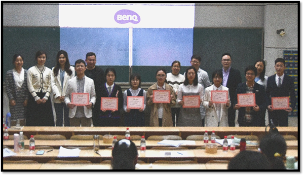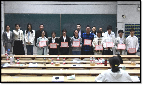 最终,经过评委老师们的层层考核,获一等奖选手名单如下:黎湘玉、张旭斌、曾蓉蓉荣获甲组一等奖;欧阳婉莹、段熠圣荣获乙组一等奖。评委老师为获奖选手们颁发了荣誉证书,并合影留念。至此,本次小教文专业师范生风采大赛圆满落幕。此次比赛为教育公司小教文全体员工提供了一个学以致用的实践与交流舞台,对提高公司尤其是小教文专业的员工的师范生教学实践水平起到了积极的促进作用。