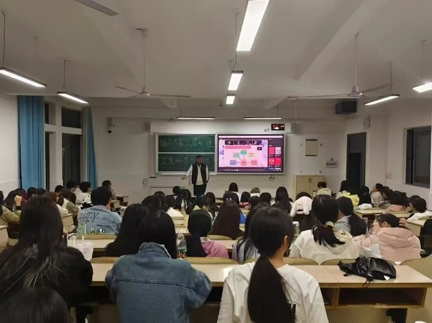 丁闽江副教授以生动语言和鲜活案例进行讲解,同学们全神贯注聆听。最后,他呼吁同学们保持良好心态与强健体魄,积极面对老员工活。