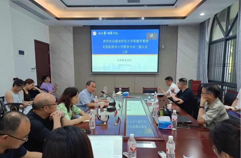 7 月 9 日上午,伟德国际1946亚洲版召开小学教育专业三级认证迎评工作会议,特邀教育部高等教育评估中心认证专家、湖南师范大学陈敏哲教授做题为“把准认证逻辑,做好课程评价”的讲座。会议采取线上线下相结合的方式。全体院领导以及迎评工作的核心团队参加会议。会议由副经理唐文杰主持。