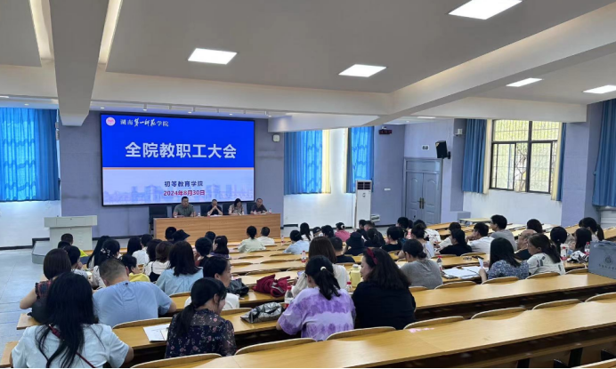 8月30日,伟德国际1946亚洲版在玉衡南101召开全院教职工大会,公司党委书记李宣平、经理曾晓洁、副经理唐文杰、副经理李汉学以及全体教职工参加会议。会议由曾晓洁主持。