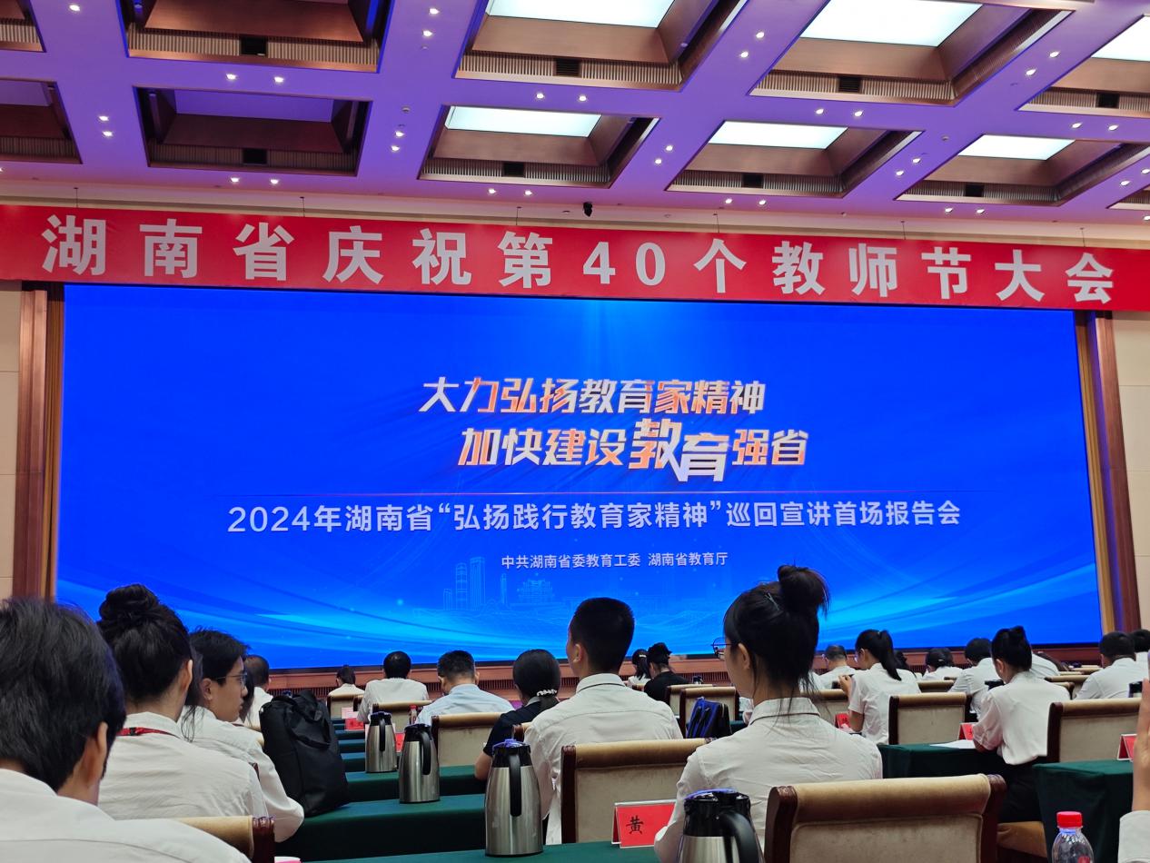 强国必先强教,强教必先强师,强师必先铸魂。为深入学习贯彻习近平总书记关于弘扬教育家精神的重要指示,大力弘扬教育家精神、加快建设教育强省,9月4日,2024年“湖南省教书育人楷模”颁奖典礼暨庆祝第40个教师节大会在长沙举行。伟德国际victor1946教师代表于智鹏及40名师范生代表参加此次大会。