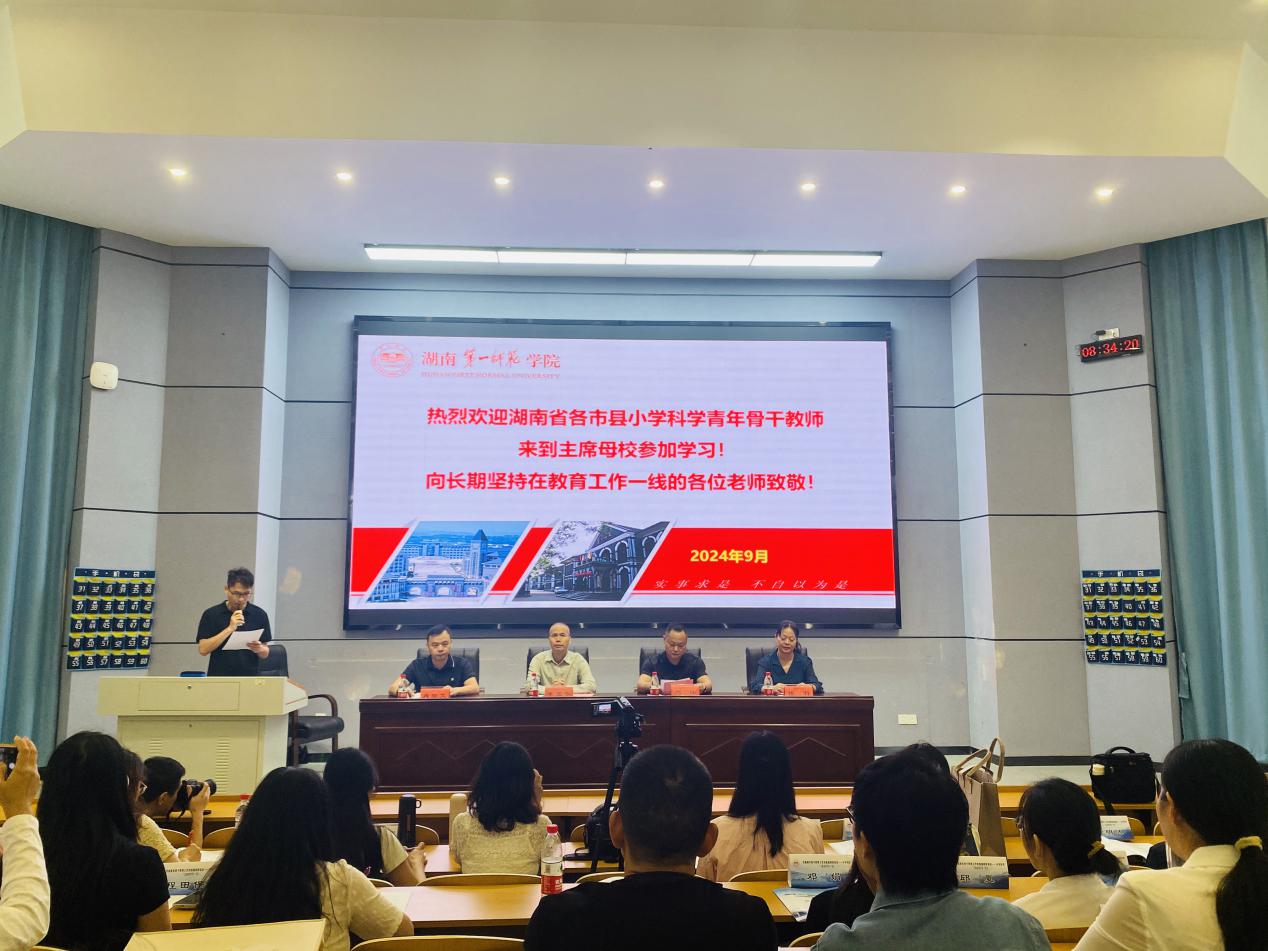 9月22日上午, “国培计划(2024)”——湖南省市县青年骨干教师(小学科学)工作坊高端研修项目开班典礼在东方红校区隆重举行。来自全省各市县的40位青年骨干教师参加本次研修,共同开启为期10天的专业成长之旅。