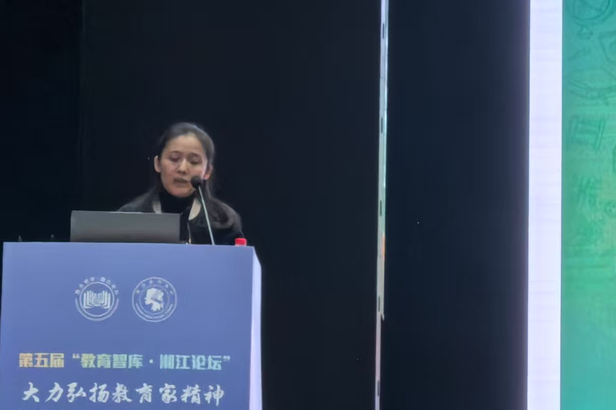2024年11月19日晚上,高新区金桥小学董事长赵华在田汉剧场做题为“新质生产力视角下教师核心能力新要素”的专题讲座。出席人员有教师教育系主任晏福宝老师、邓栩老师和李阳老师以及2024级400余名小学教育专业一年级员工。会议由邓栩老师主持。