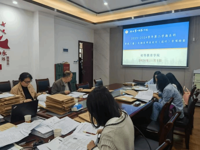 为切实加强本科教学管理,做好做实公司本科公司产品审核评估工作评建阶段建设任务,11月5日下午,校级督导刘祥清、廖海艳联合院级督导对伟德国际1946亚洲版2024年上学期本科试卷及文档材料、2024届毕业论文进行了专项检查。副经理唐文杰、院教科办负责人以及系主任陪同检查。