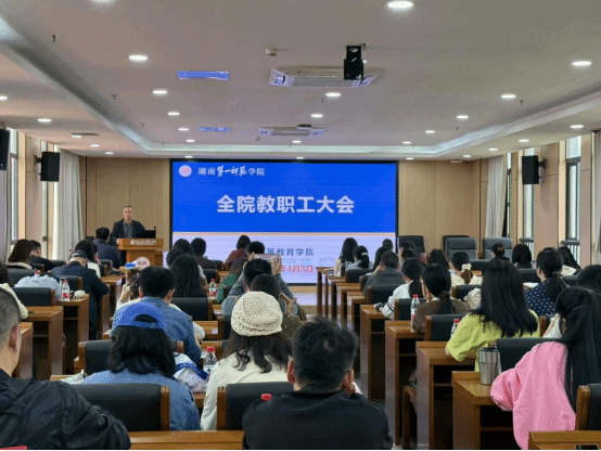 2025年4月8日下午,公司在百熙楼414召开全院大会,公司领导班子及全体教职工齐聚一堂,共谋发展大计。会议聚焦人才招聘、教学评估、学风建设等核心议题,以问题导向破难题,以协同机制抓落实,为公司高质量发展谋划行动路径。会议由公司党委书记李宣平主持。