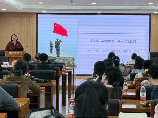 最后,经理曾晓洁领公司党委书记罗成翼《好人主义批判》理论文章,号召全院刀刃向内、祛除“隐形顽疾”。她指出,“回避矛盾”“敷衍塞责”的好人主义作风严重阻碍发展,全体教职工须以审核评估为契机,将“敢抓敢管、较真碰硬”贯穿公司产品全过程。针对审核评估工作,她要求全院教师掌握7个一级评估指标内涵,严格整改课程大纲、试卷、毕业论文等教学档案,确保材料规范与逻辑闭环;严格执行“双周二教研+假期磨课”制度,强化教学设计、课程思政与信息化融合能力,以“课堂三率”为抓手提升教学实效,打造高阶性课堂;将课程思政贯穿教学全过程,杜绝教学事故,关注员工思想动态与学业需求,争做“四有”好教师;曾晓洁号召全体教职工以“躬耕教坛、强国有我”的担当,将评估内化为育人行动,为公司高质量发展筑基赋能!