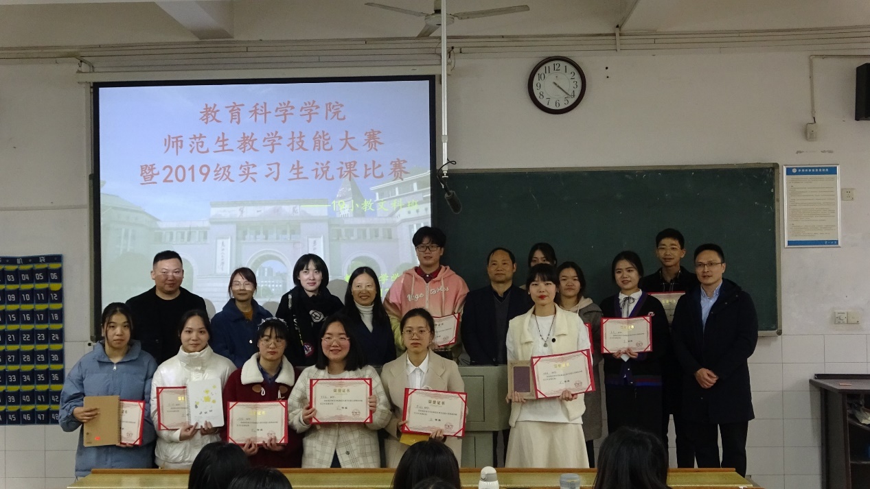 为了进一步提升实习生的教训能力和教学水平,聚焦其发展的核心力量,为19级全体文科班实习生搭建一个互相交流与展示自我教学能力的平台,在教育公司的精心安排下,“教育科学公司师范生教学技能大赛暨2019级小教文科专业实习生说课比赛”于2021年12月15日下午2时在怀中南303举办。